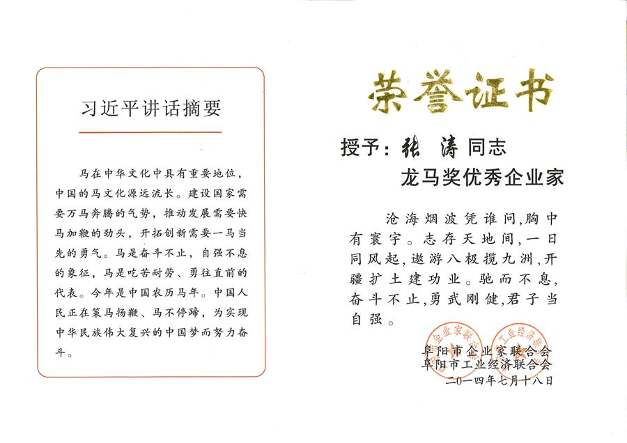 張濤同志獲龍馬獎優(yōu)秀企業(yè)家